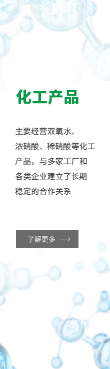 安徽安德諾化工產品銷售有限公司:位于合肥市蜀山區(qū),交通便利,主要經營雙氧水(27.5%、35%、50%)、濃硝酸(98%)、稀硝酸(40%~68%)等化工產品,與多家工廠和各類企業(yè)建立了長期穩(wěn)定的合作關系。公司產品齊全,實力雄厚,重信用、守...